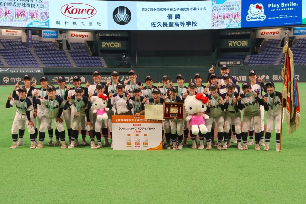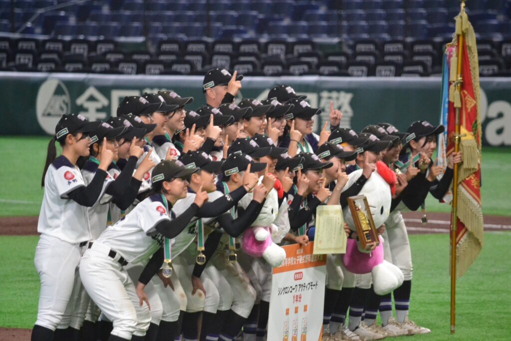 女子野球部 全国選抜大会で初優勝! 女子野球2026年4月6日 4月4日、東京ドームで開催された第27回全国高等学校女子硬式野球選抜大会決勝戦において、履正社高校を6-4で破り、見事初優勝を果たしました。試合は逆転につぐ逆転というシーソーゲームでしたが、選手たちは最後まで諦めずに粘り強く戦い、接戦を制しました。球場に足を運んでいただいた大勢の方々を初め、大変多くの方々に声援をいただきました。誠にありがとうございました。 前のニュース一覧へ戻る